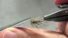 Hook: Partridge Jardine Living Nymph Hook (GRS7) #16 (see note), Thread: Benecchi 12/0, olive, Weight (optional): Fine lead wire, Abdomen: Produce bag ribbon, green; mink underfur, light blue dun -