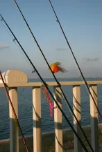 "No problem, mon", (that's what I learned to say first in local accent) I took my 30 lbs outfit out and started trolling on the way offshore. Since the only rod holder was already "taken", we added some teasers as well, by wrapping them "the local way" all around the boat.