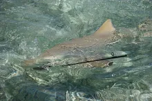 I lost one after few attempts to get a picture, (fish just decided to run again) and the second one was eaten by a lemon shark not more than 15 meters or 45 feet from me. Bugger took my fish and my fly! And completely ruined my leader with it's skin or teeth. I'm not really sure about the cause but the result was changing the whole leader on the spot.