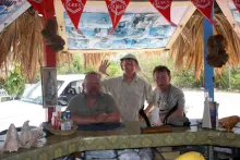 But they knew what they were doing so we had some steaks (and conchs of course) for lunch in the shade. Everybody seemed happy and ready for the party in front of the club that happens there every Saturday evening after the race. Boys in big pickups brought some even bigger speakers and soon everybody was walking the "Bahama way", bumping along with the "rake and scrape" - the famous local music.