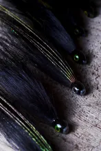 The staring version adds a body to give some more glare under the water and it also adds eyes under a small coating of epoxy. I have heard renowned Danish salmon angler and guide Henrik Mortensen say this fly can see where the fish are... That's hardly a fact, but it is a good fly.