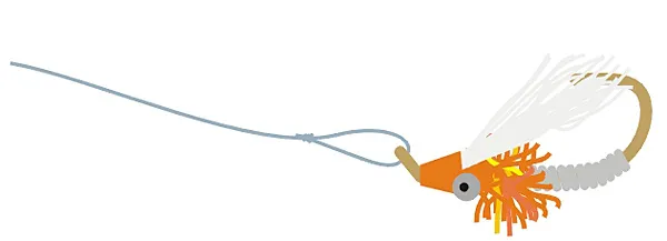 I prefer fishing most of my flies in a loop. Flies like this one will easily turn upside down as supposed, when they aren't too tightly attached to the tippet.